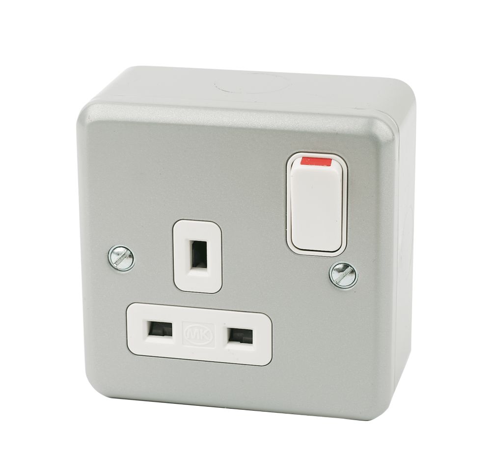 Free next day delivery available free collection in 5 minutes. A minimum five year guarantee on all electrical products. Mk electric 13a metal clad switched socket outlet red rocker g2977rr. 13a 1 gang sp switched metal clad socket with white inserts 43926 product rating 4 7 out of 5 stars compare.