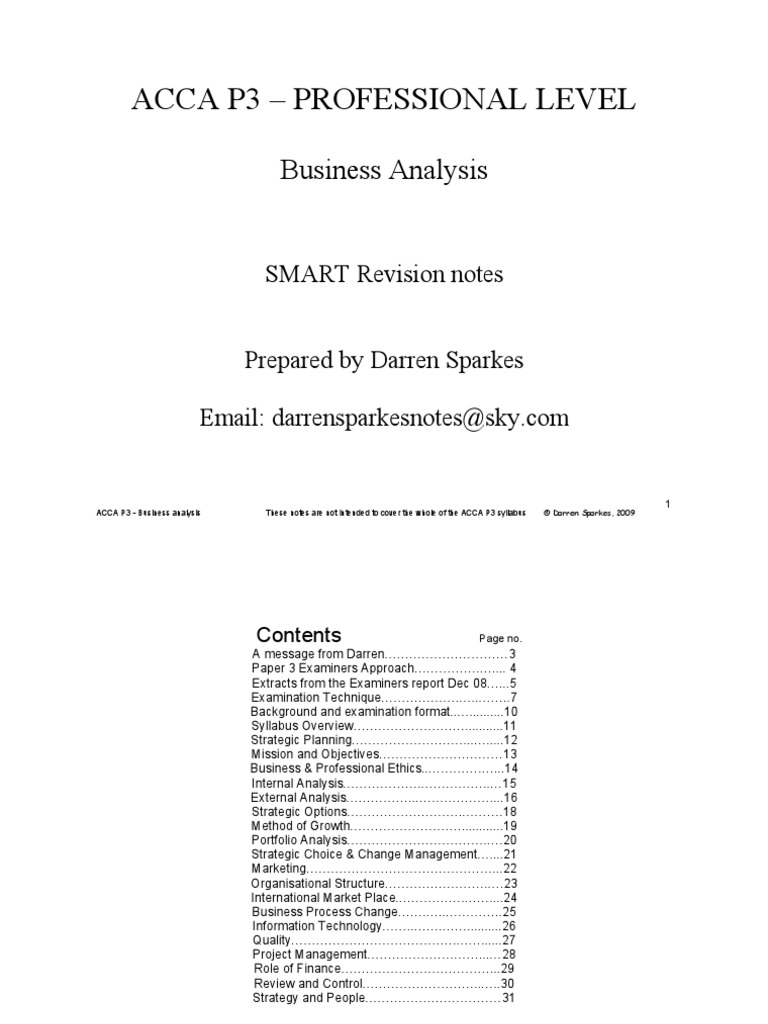Acca Paper P3 Business Analysis Sample From Www Tonysurridge