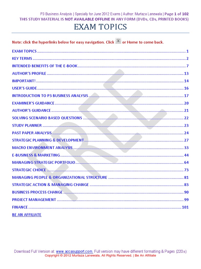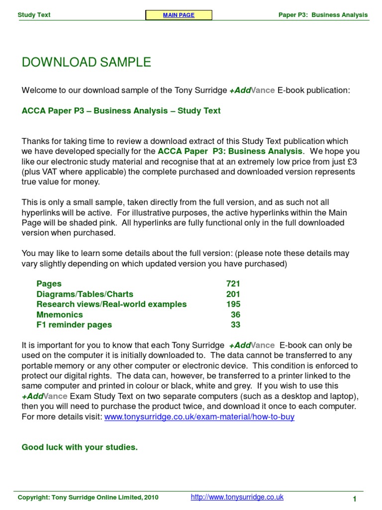 Acca P3 Business Analysis Exam Focused Study Text Book Free