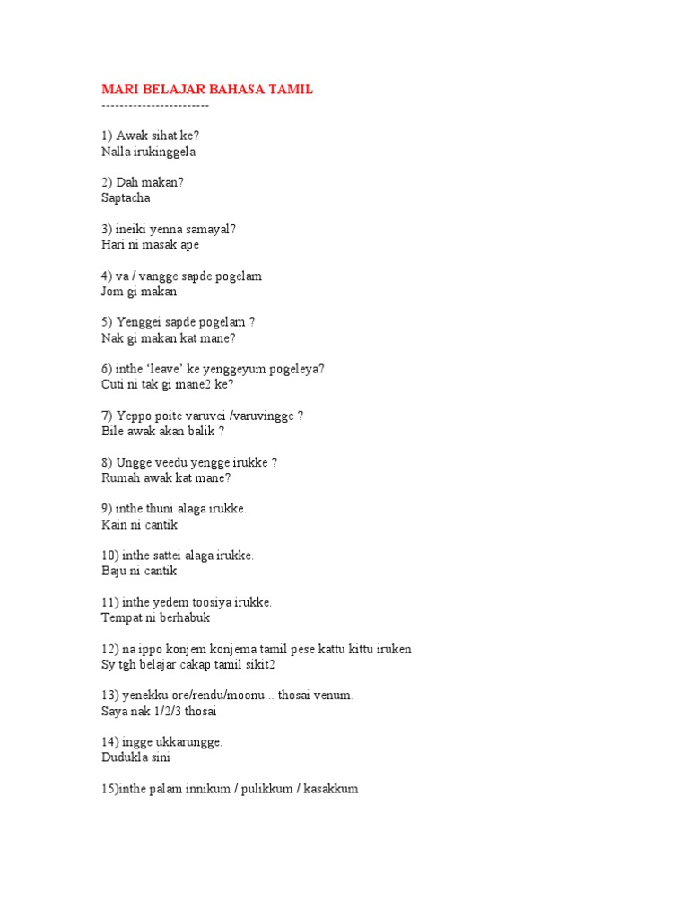 Belajar Bahasa Tamil Dalam Bahasa Melayu Cara Mengajarku