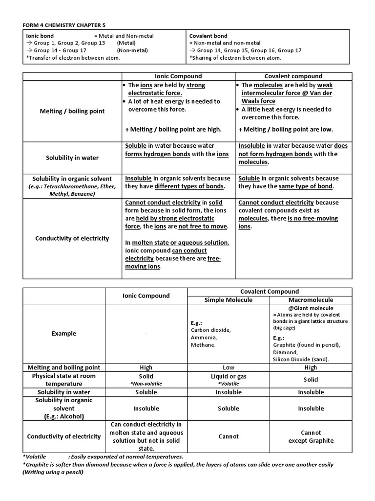 Chemistry Spm Form 4 Short Notes Chapter 5 Chemical Bonds Ionic