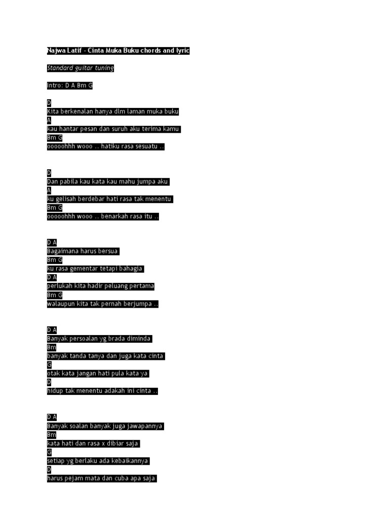 Standard Guitar Tuning Najwa Latif Cinta Muka Buku Chords And Lyric