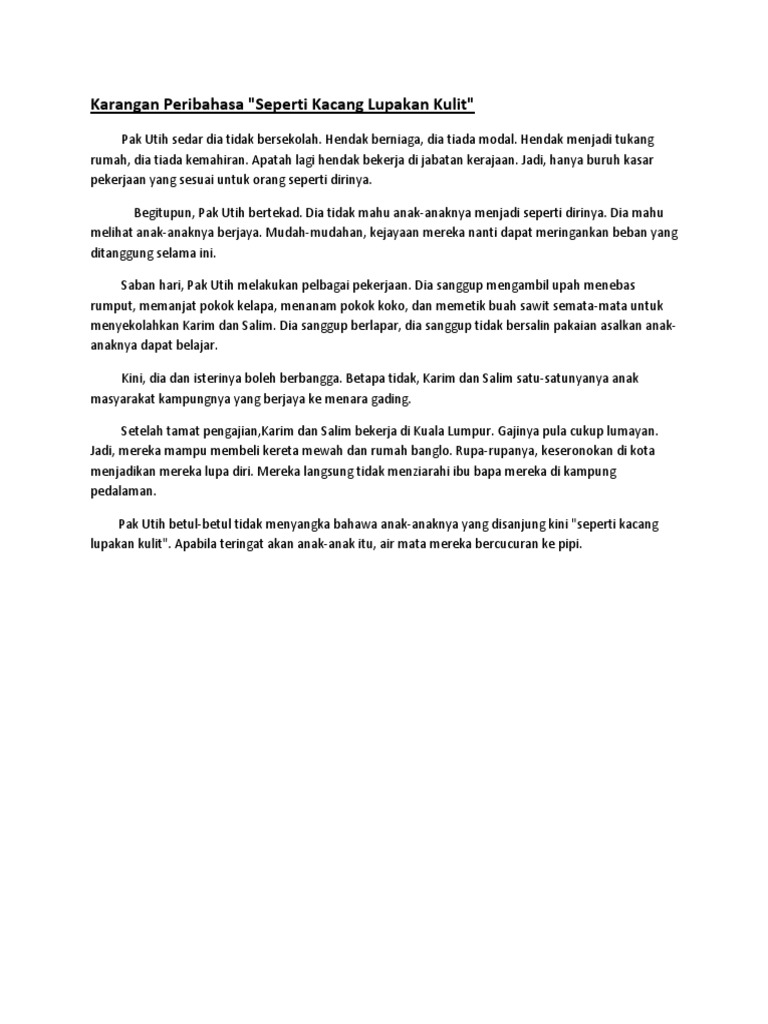 Karangan Peribahasa Seperti Kacang Lupakan Kulit