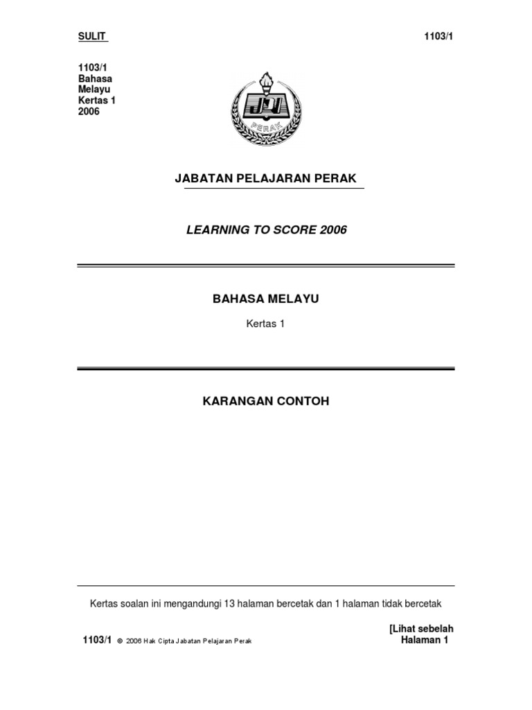 Contoh Soalan Spm Bahasa Melayu Kertas 1