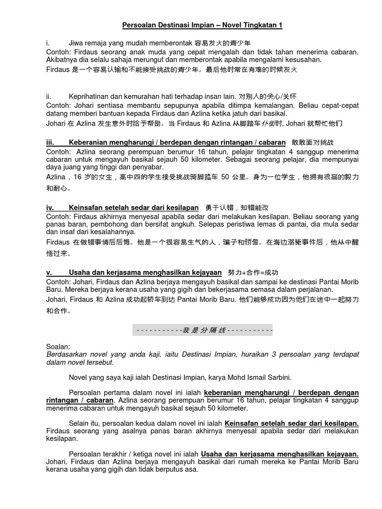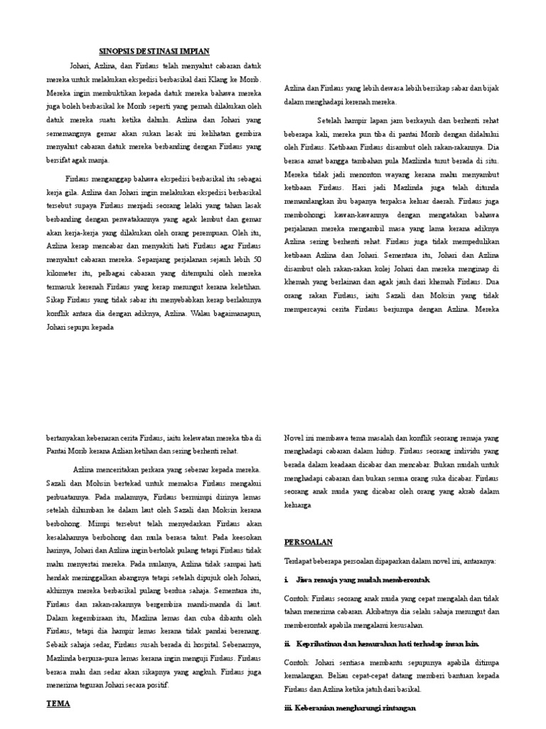 Komsas 2 Pdf Novel Destinasi Impian Tema Dan Persoalan Tingkatan