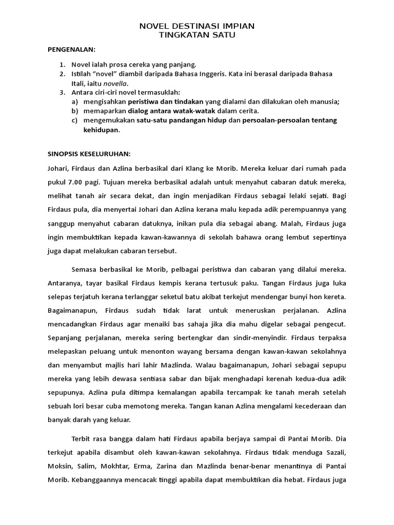 Novel Tingkatan 1 Destinasi Impian Kupasan Novel Laman Komsas