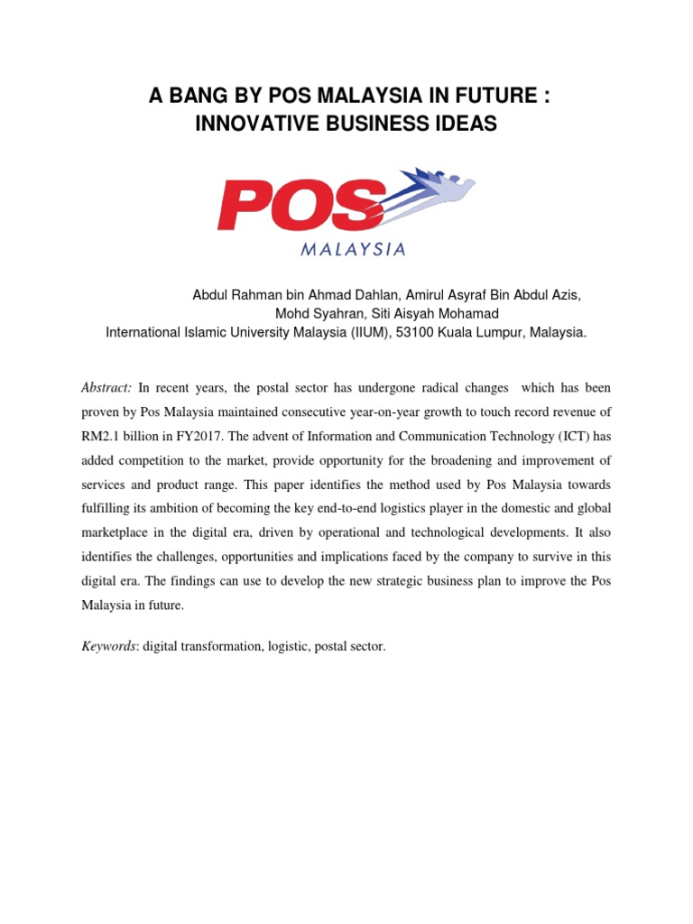 A Bang By Pos Malaysia In Future Innovative Business Ideas