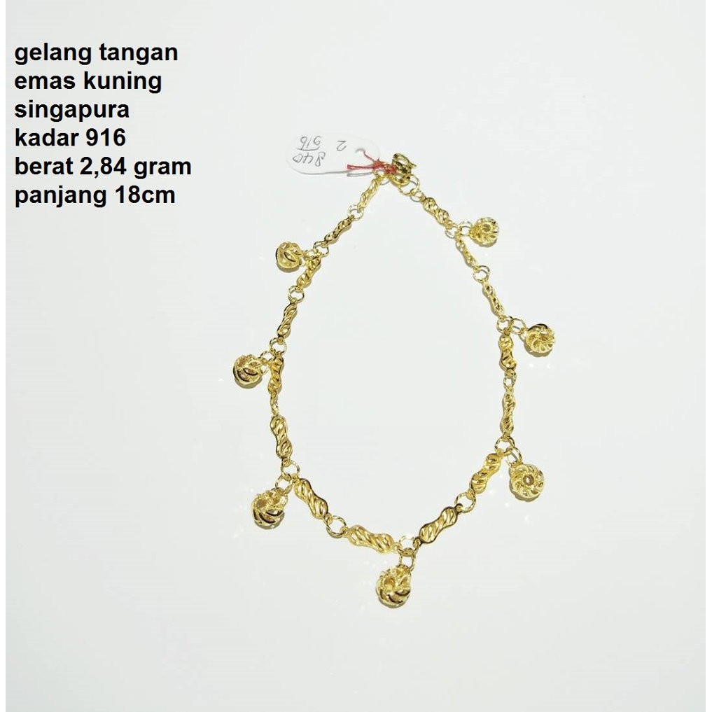 Gelang Tangan Emas Kuning Singapura Kadar 916 Sc Diskon Shopee