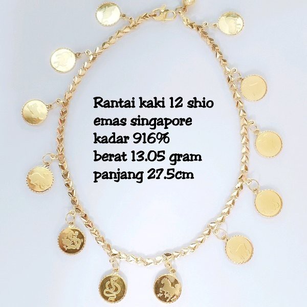 Jual New Gelang Kaki Emas Kuning Singapore 12 Shio Kadar 916