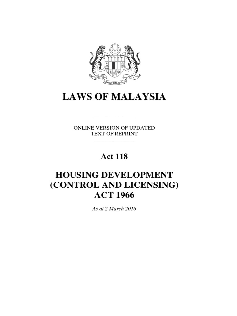 Housing Development Control And Licensing Act 1966 Act 118 And
