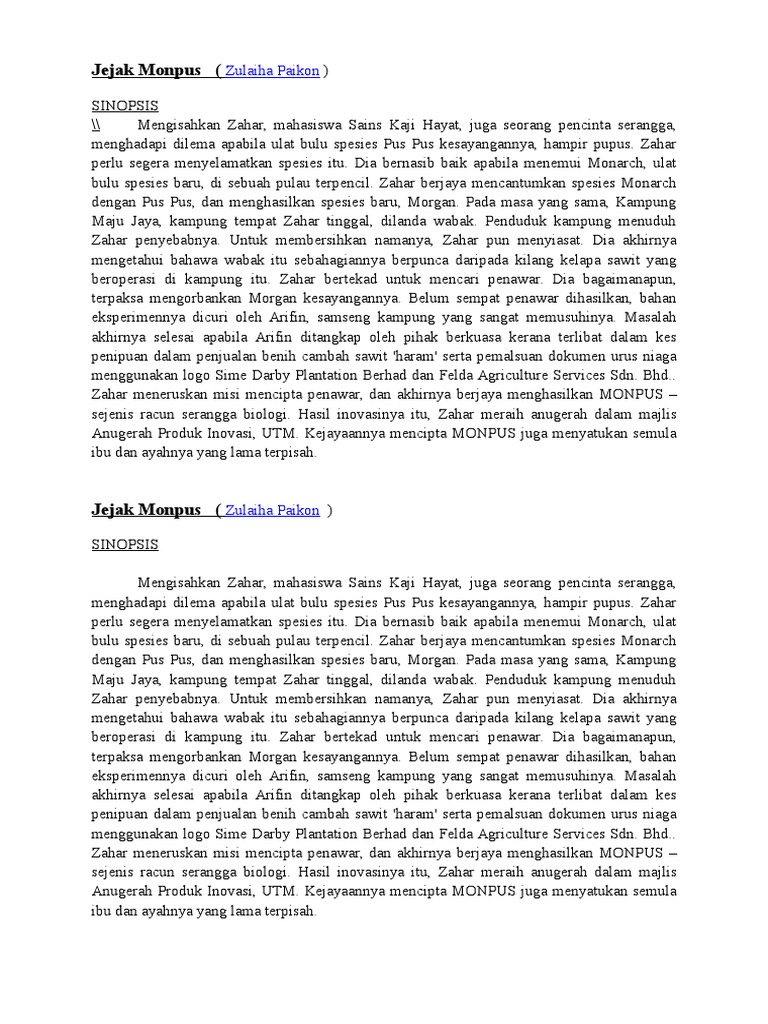 Novel Jejak Monpus Sinopsis Tema Persoalan
