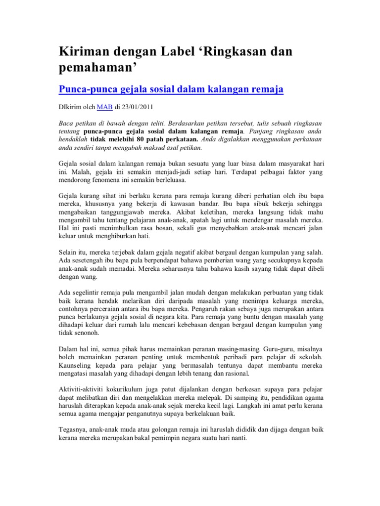 Contoh Soalan Rumusan Bahasa Melayu Tingkatan 1 Soalan L