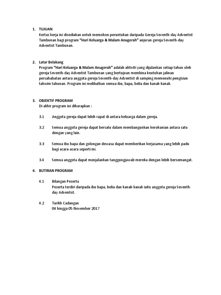 Contoh Kertas Kerja Family Day Contoh Mulan