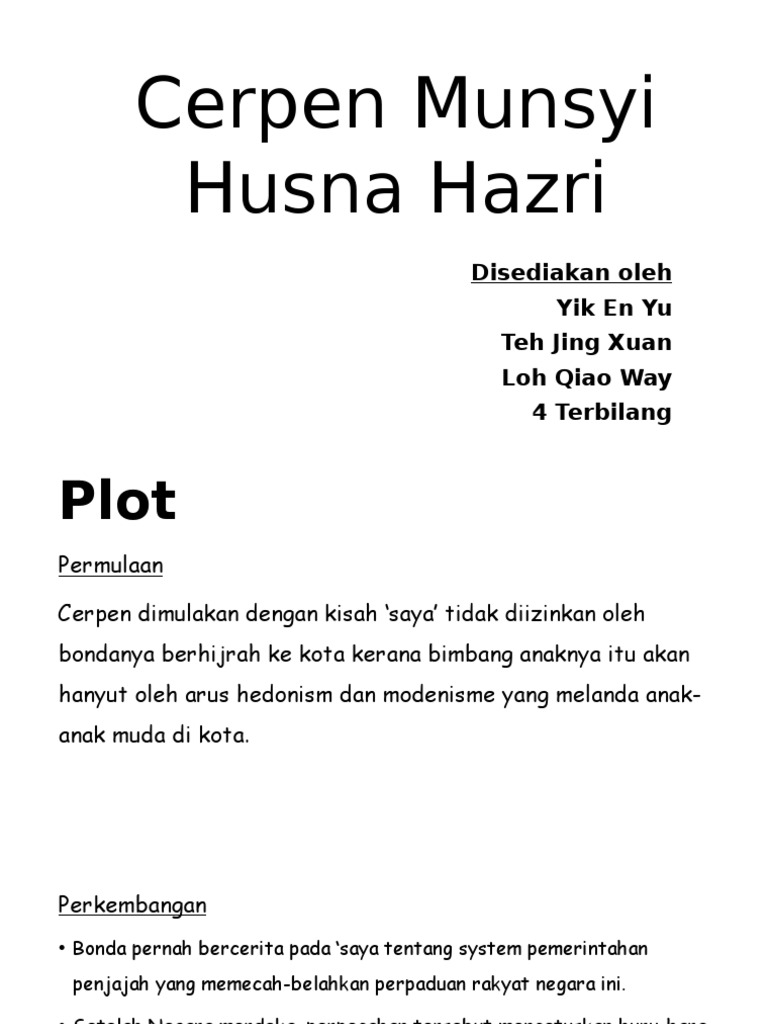 Nota Komsas Tingkatan 4 Cerpen Munsyi Pendidikanmalaysia Com