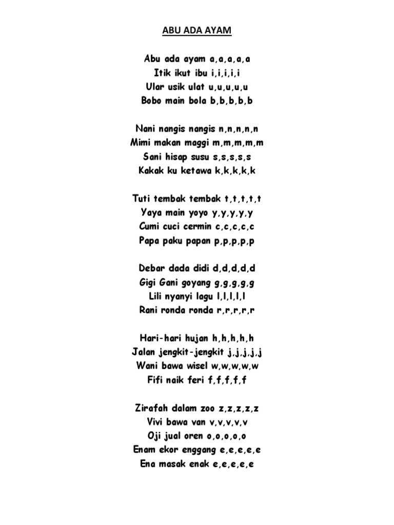 Tahu Sebut Bunyi Asosiasi Aksi Dan Lagu Abu Ada Ayam Buku 2