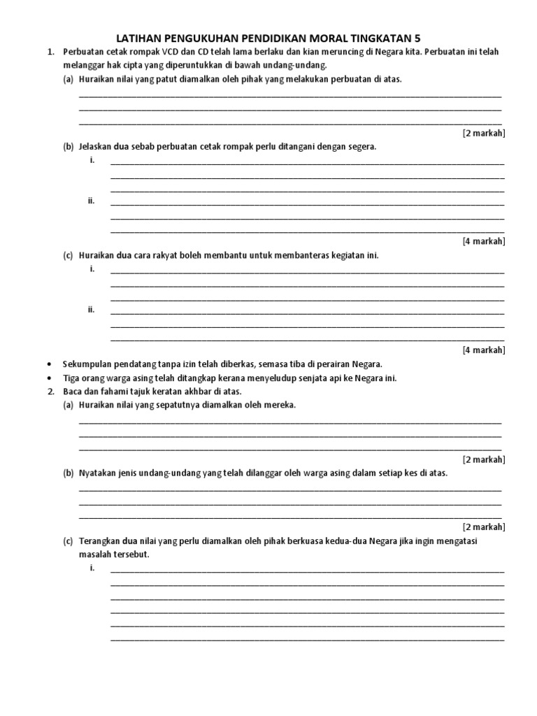 Latihan Pengukuhan Pendidikan Moral Tingkatan 5 Ke 3