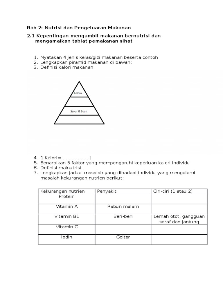 Soalan Nutrisi Tingkatan 2 Kebaya Muda