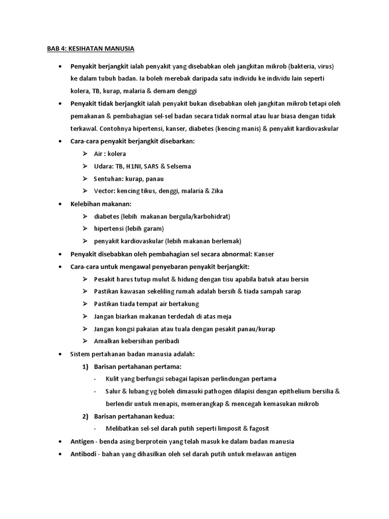 Sains Tingkatan 2 Bab 4 Kesihatan Manusia