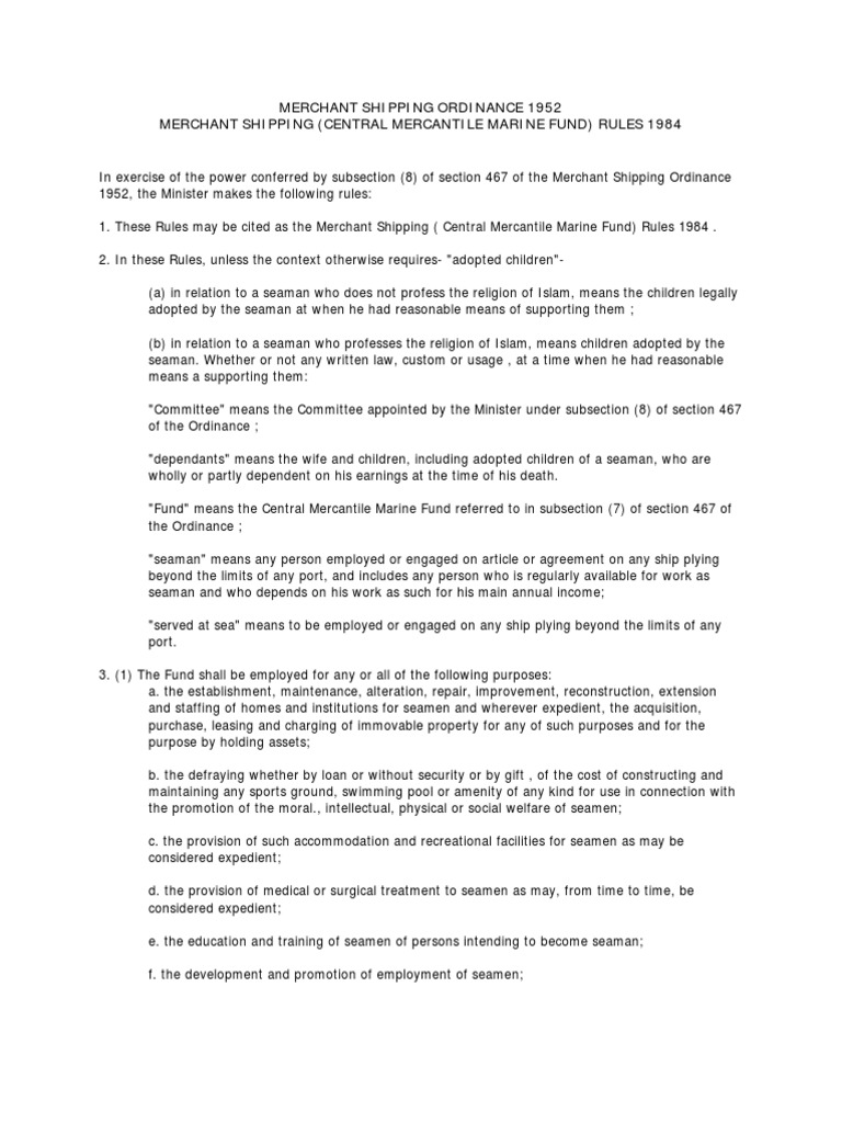 Merchant Shipping Ordinance 1952 Malaysia Merchant Navy Welfare