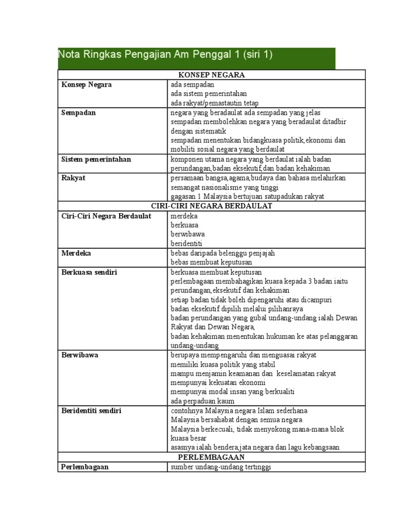 Nota Ringkas Pengajian Am Penggal 1