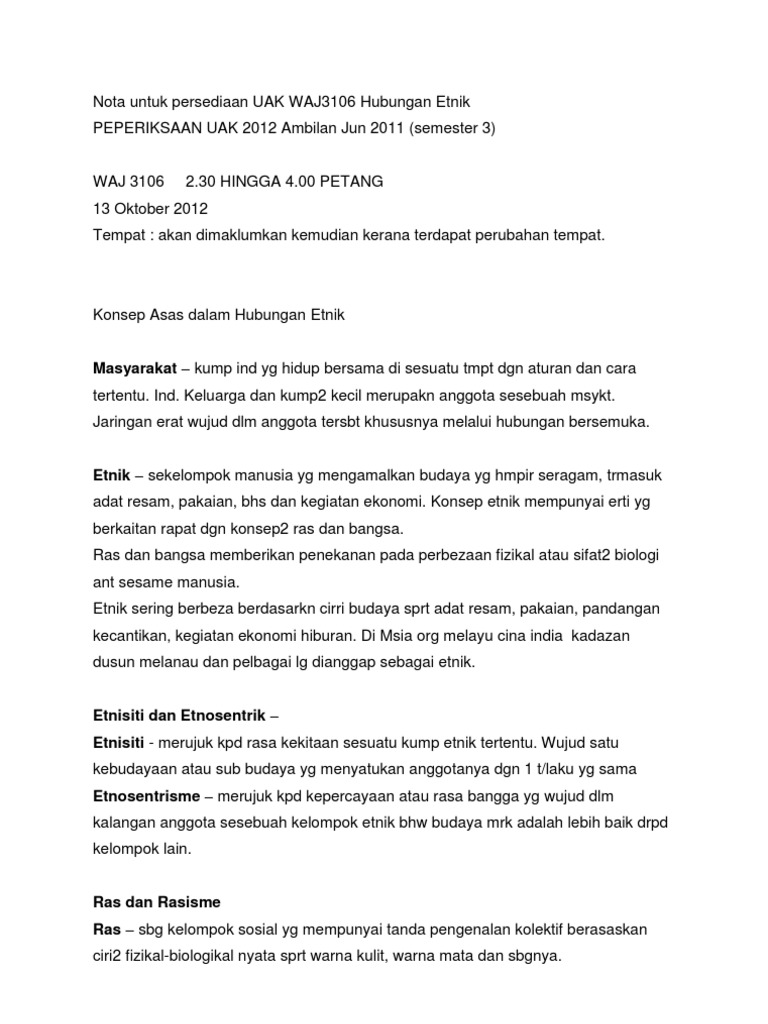 Nota Untuk Persediaan Uak Waj3106 Hubungan Etnik
