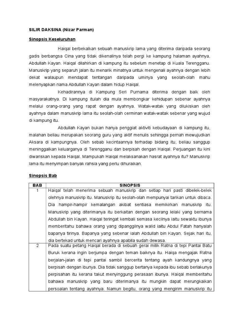 Analisis Novel Silir Daksina Sinopsis Keseluruhan Sinopsis Bab