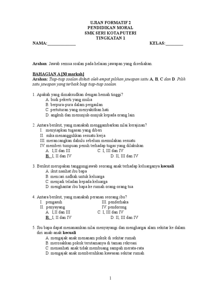 Ujian 1 Pendidikan Moral Tingkatan 3 2019