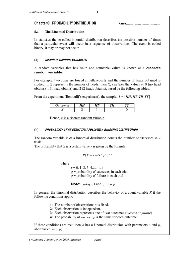 Probability Distribution Add Maths Form 5