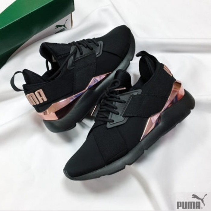 Puma Muse X 2 Sepatu Sneakers Metalik Warna Hitam Rose Gold