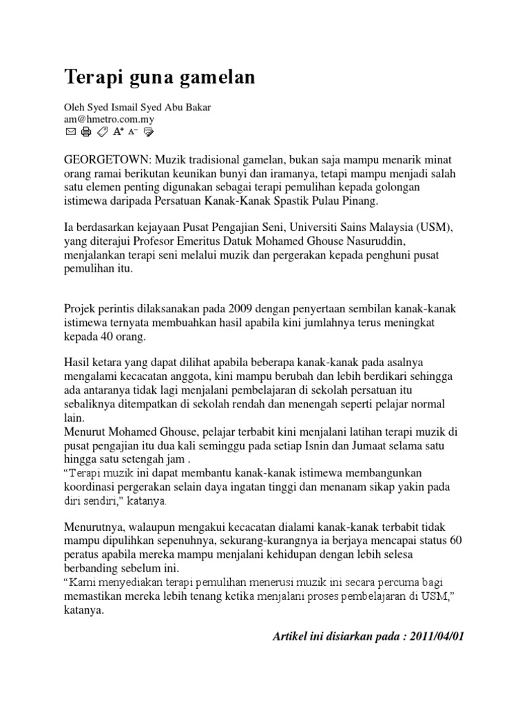 Terapi Guna Gamelan Artikel