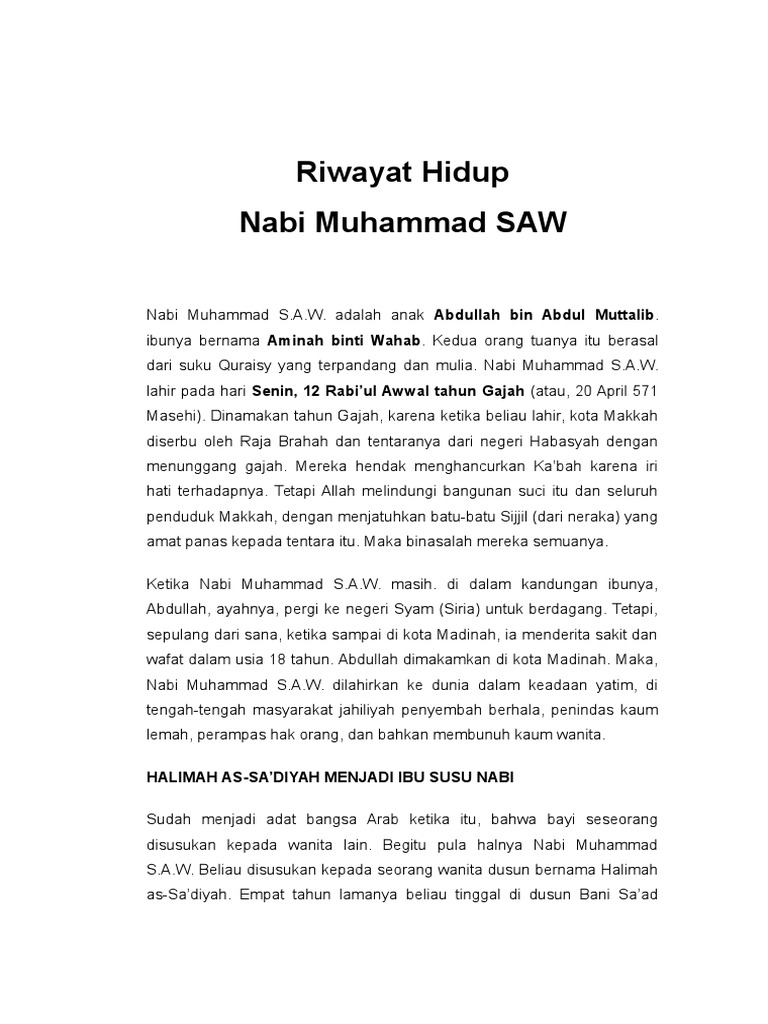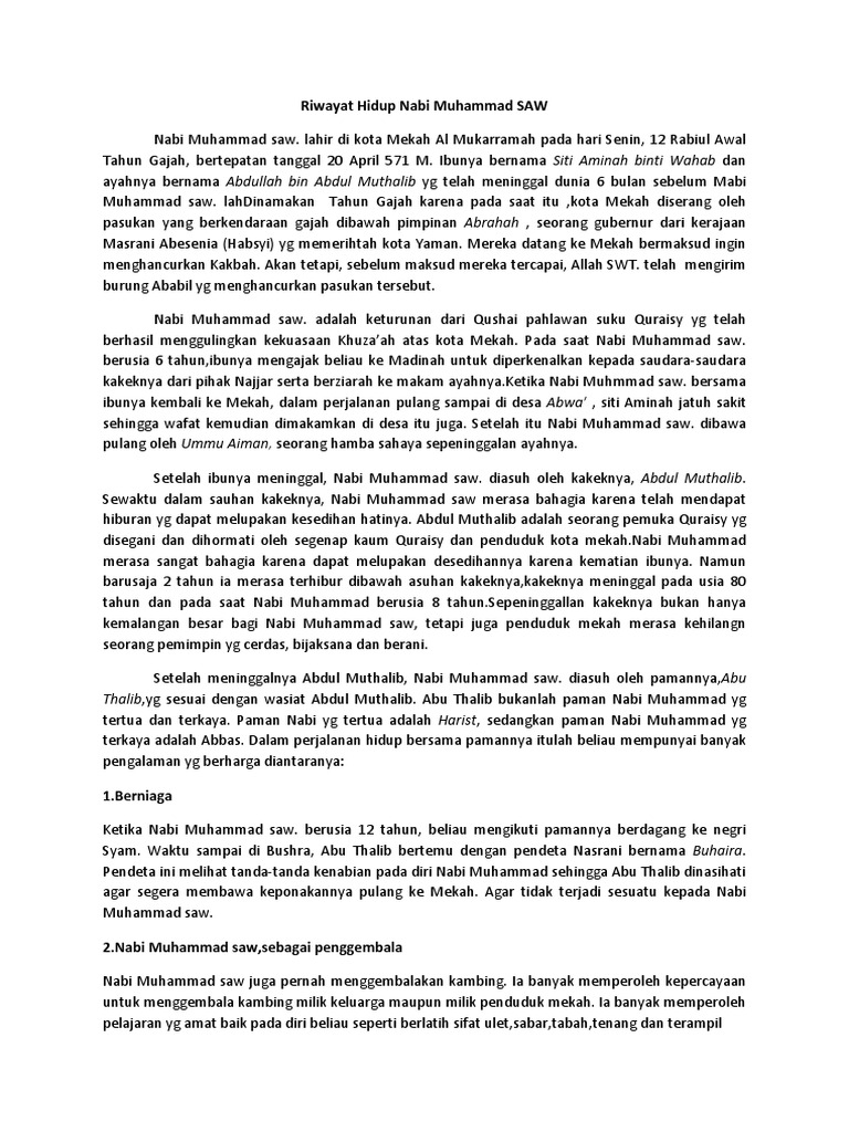 Riwayat Hidup Nabi Muhammad Saw Karya Tulis Ilmiah Http