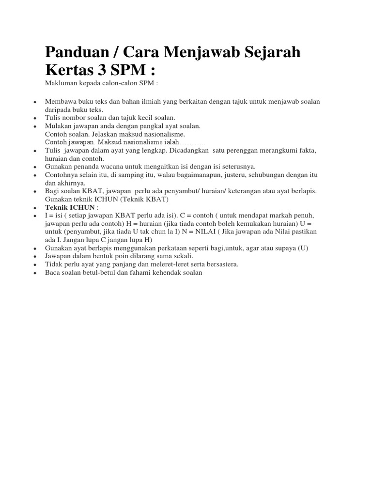 Panduan Cara Menjawab Sejarah Kertas 3 Spm Teknik Ichun