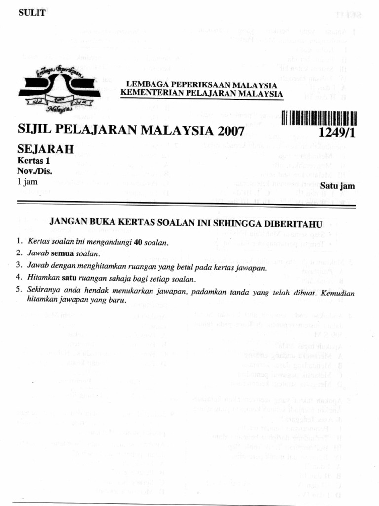 Spm 1249 2007 Sejarah K1 Berjawapan