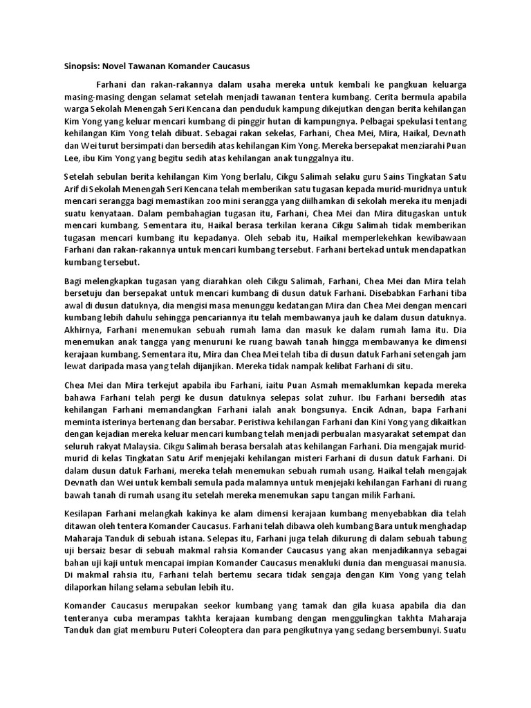 Contoh Soalan Novel Tawanan Komander Caucasus O Soalan