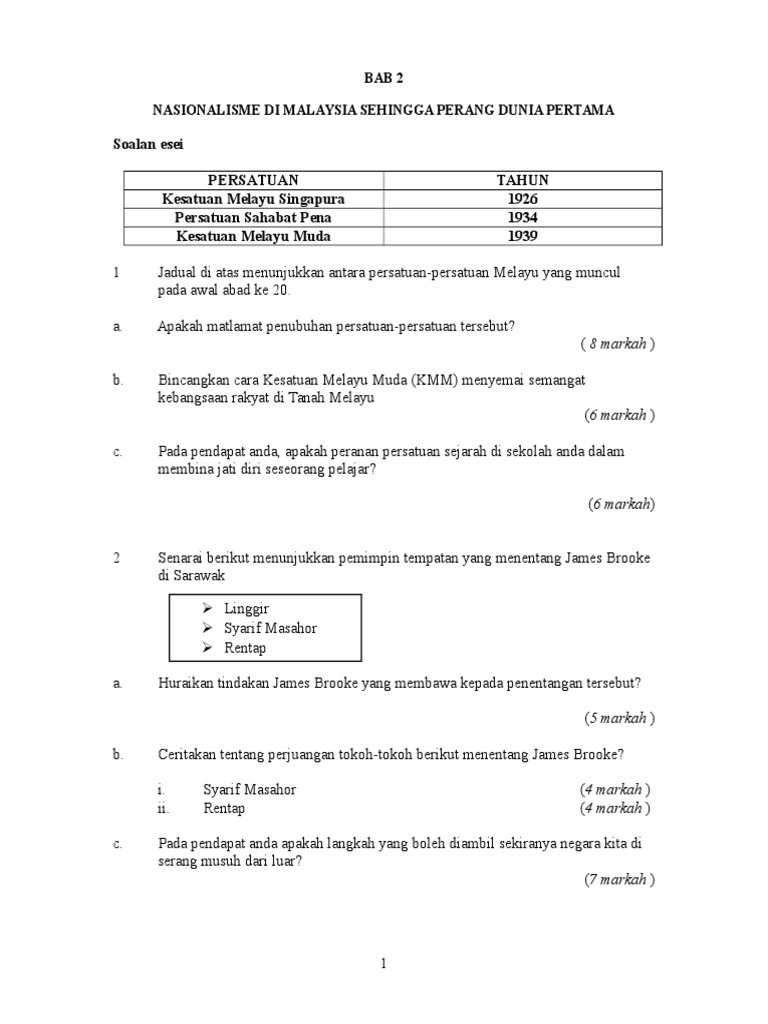 Soalan Esei Sejarah Tingkatan 5 Bab 1
