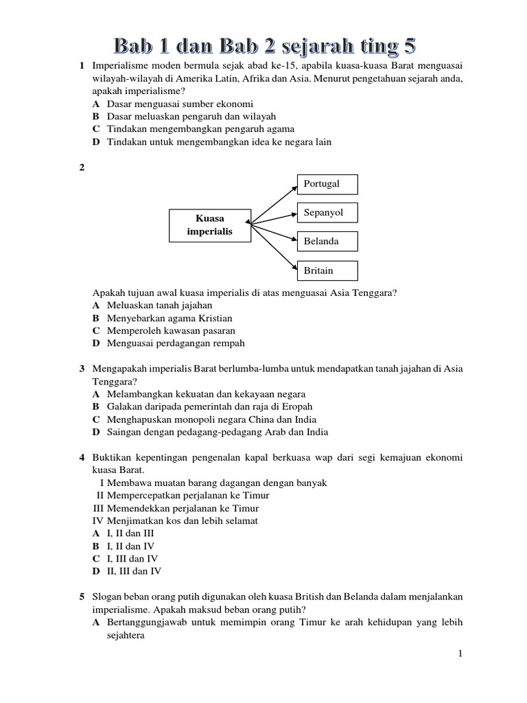 Soalan Sejarah Tingkatan 5 Bab 1