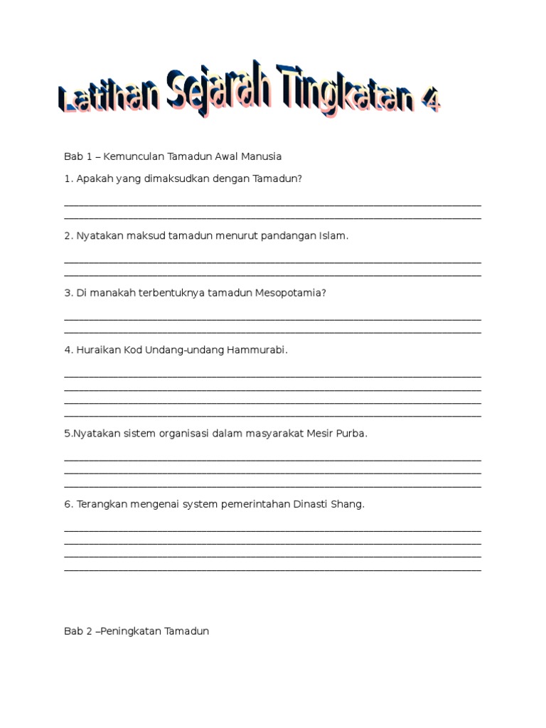 Soalan Dan Jawapan Sejarah Tingkatan 4 Spm Bab 1 Kemuculan Tamadun Awal Manusia