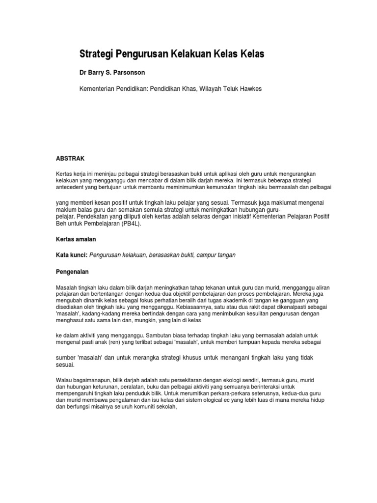Strategi Pengurusan Kelakuan Kelas Kelas