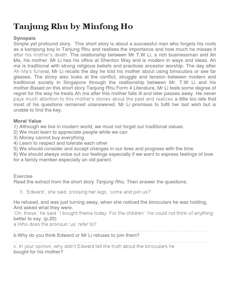 Short Story Tanjung Rhu Form 4 Literature Docx Jlk9w0xkr745